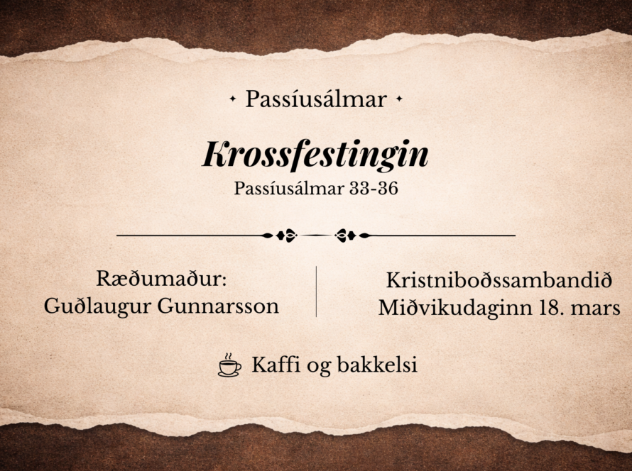 Samkoma mið 18. mars kl 20