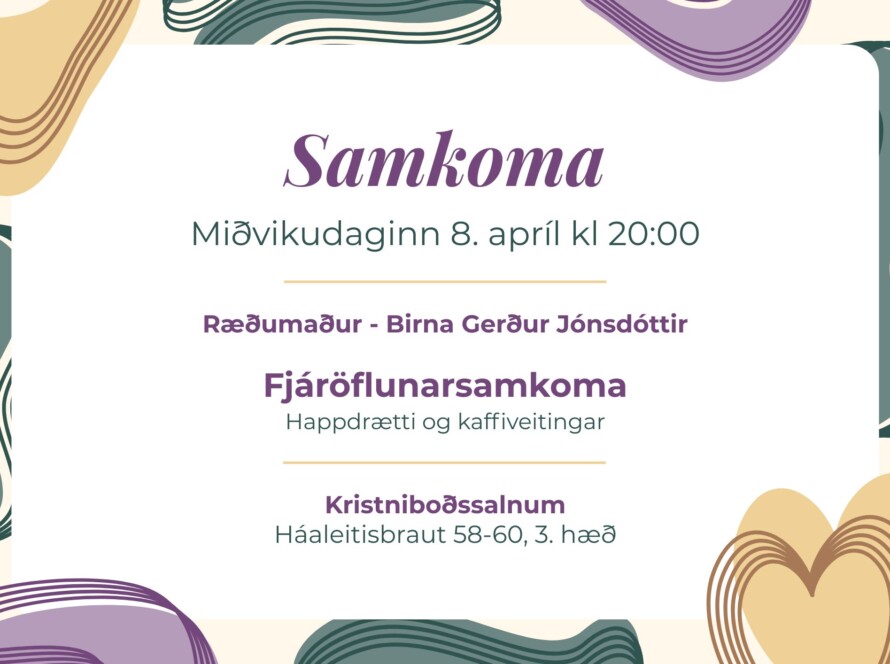 Fjáröflunar samkoma mið 8. apríl kl 20