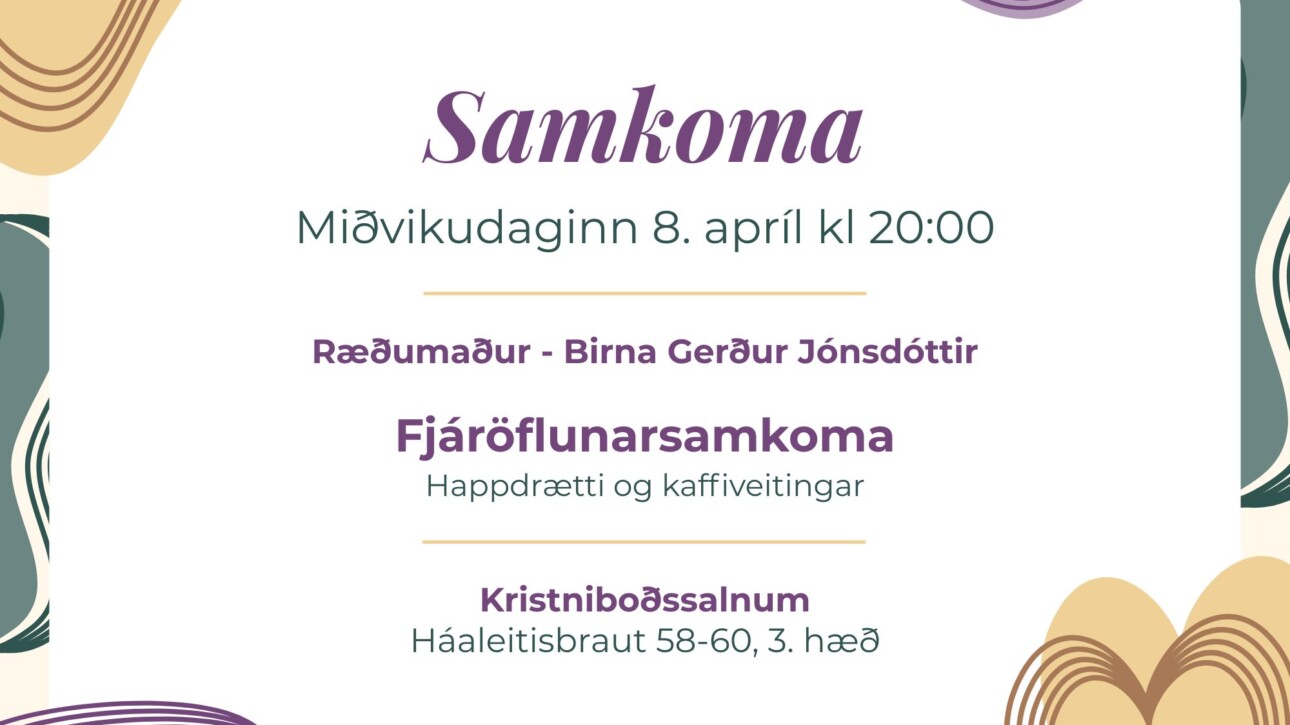 Fjáröflunar samkoma á miðvikudaginn 8. apríl kl. 20
