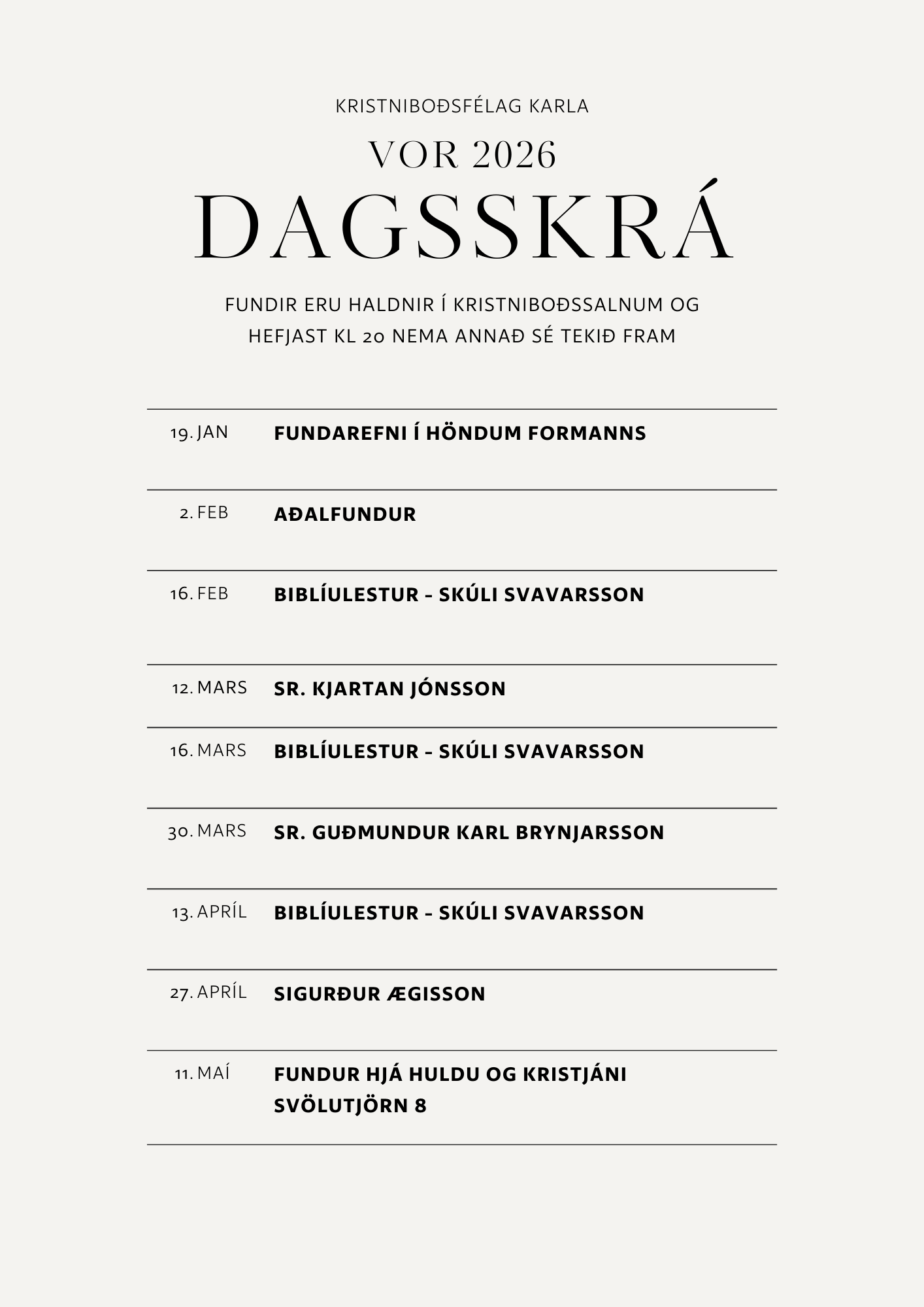Dagsskrá Kristniboðsfélags karla