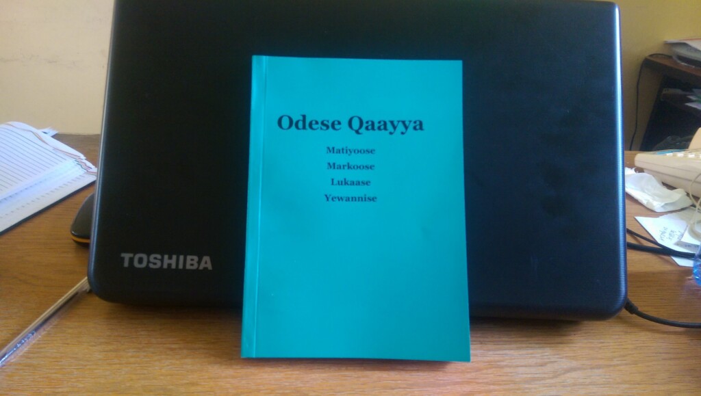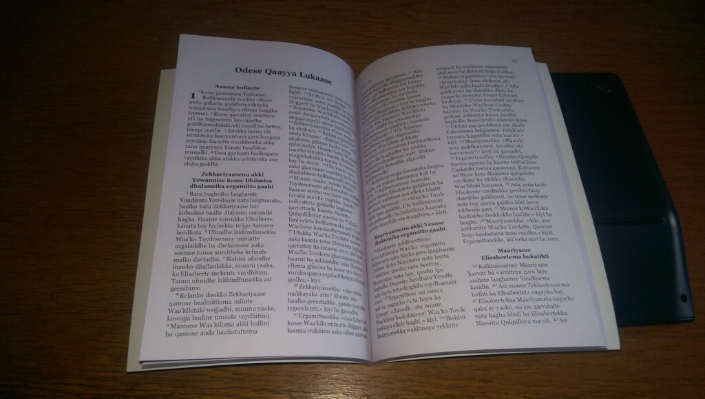 „Í dag er stór dagur í biblíuþýðingarverkefninu okkar. Það eru rúm sjö ár síðan við þýddum fyrsta versið og nú höfum við loksins náð því markmiði að við getum prentað fyrsta hlutann af Biblíunni. Það er ekki oft að ég verð svo snortinn að mér vöknar um augu en þegar ég fékk að sjá þessar myndir brast ég í grát. Nú er til bók sem inniheldur fagnaðarerindið á tsamakko. Það eru stórtíðindi!“